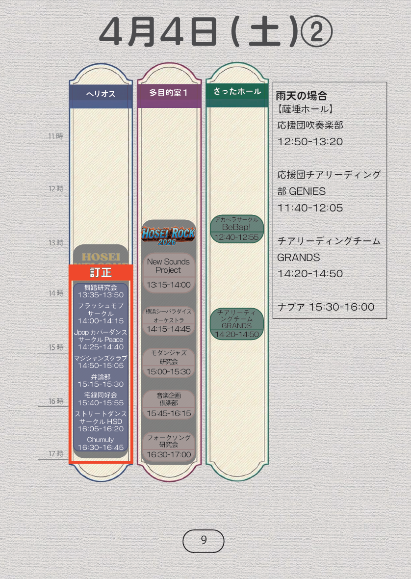 | p9 4月4日(土)のタイムテーブルに誤りがありました。正しくは右の画像となります。 | ![]() |